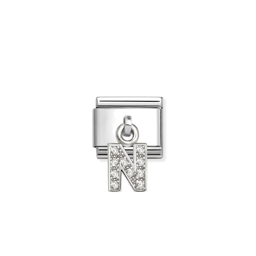 COMPOSABLE CLASSIC LINK 331818/14 LETTER N CHARM IN SILVER AND CZ