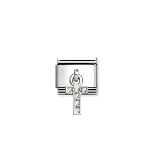 COMPOSABLE CLASSIC LINK 331818/20 LETTER T CHARM IN SILVER AND CZ