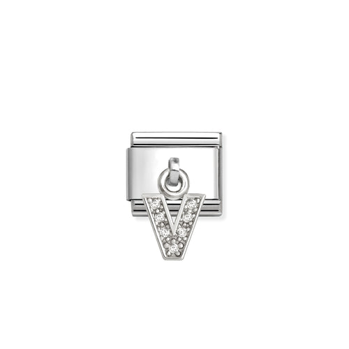 COMPOSABLE CLASSIC LINK 331818/22 LETTER V CHARM IN SILVER AND CZ