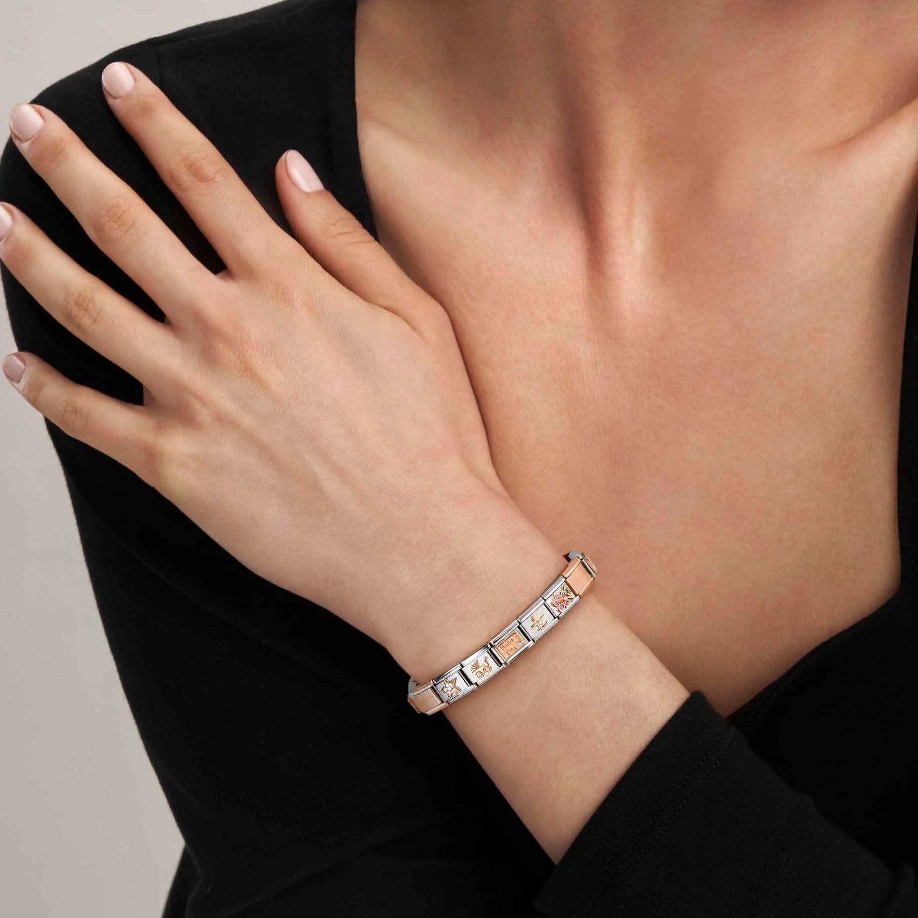 Original Composable Link for Nomination's Composable Classic Bracelet with Shooting Star with etched details symbol in 9K rose gold on stainless steel. Made in Italy.