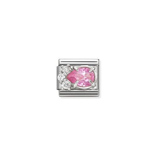 COMPOSABLE CLASSIC LINK 330329/08 WHITE & PINK CZ TEARDROP IN SILVER