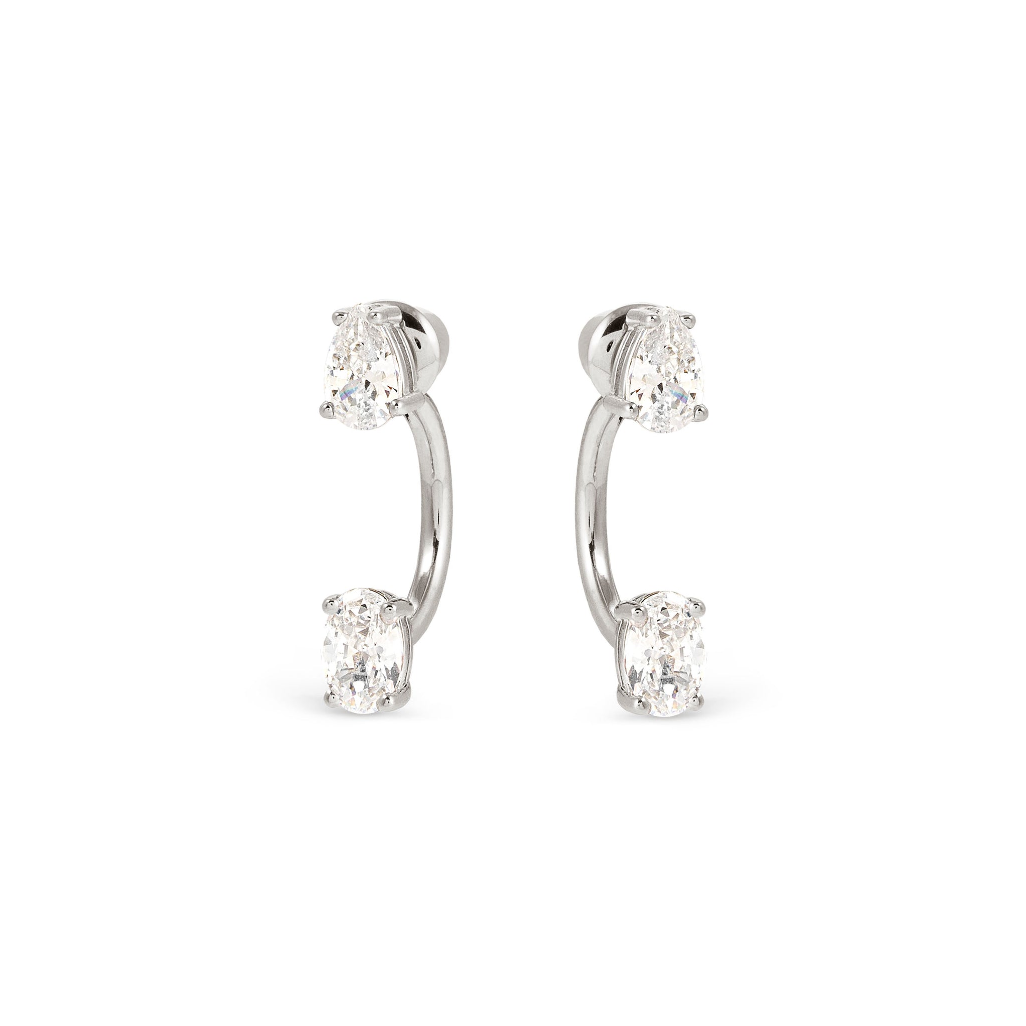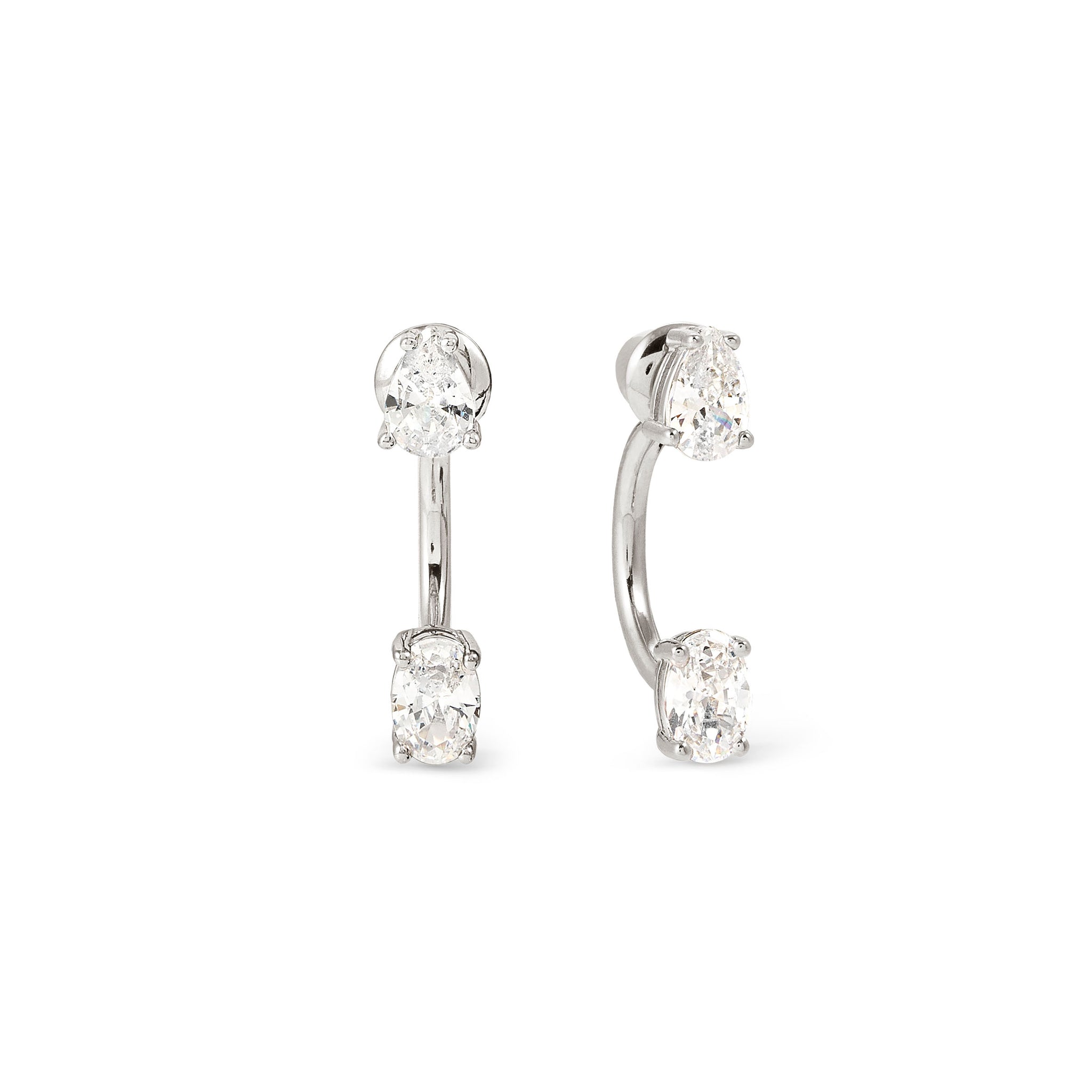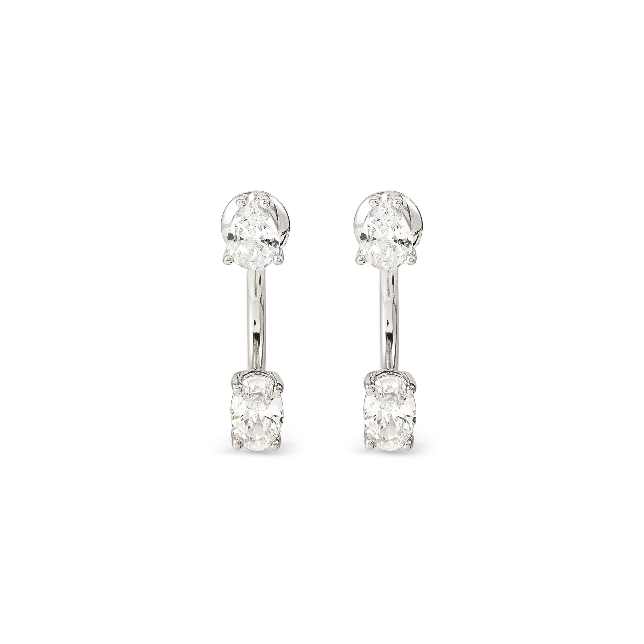 Elevate your everyday elegance with these sterling silver stud earrings, featuring two dazzling white cubic zirconias, one tear drop, one oval. Their timeless design adds a sophisticated sparkle, perfect for both casual and formal occasions.