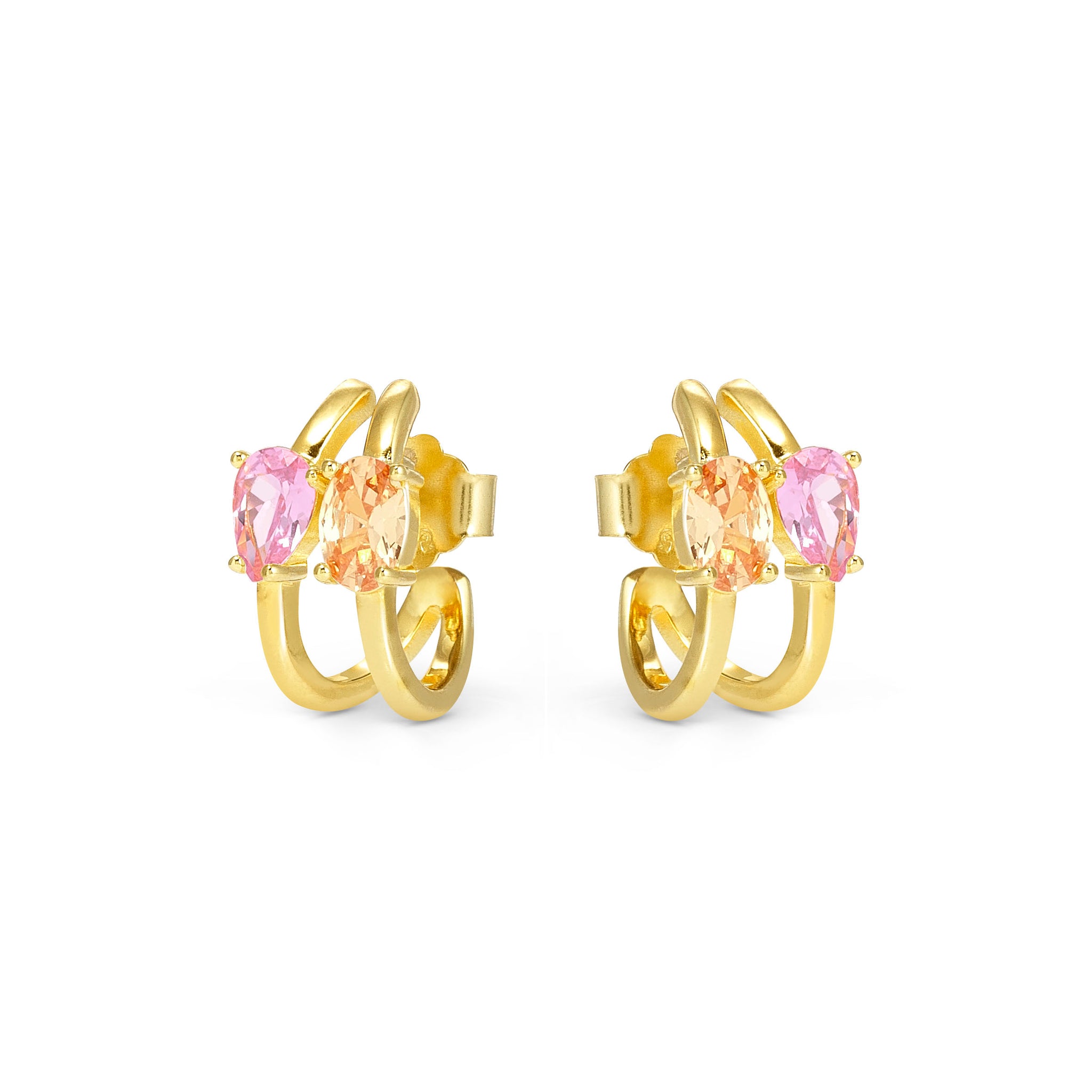 COLOUR WAVE EARRINGS 149859/024 GOLD PINK & CHAMPAGNE CZ