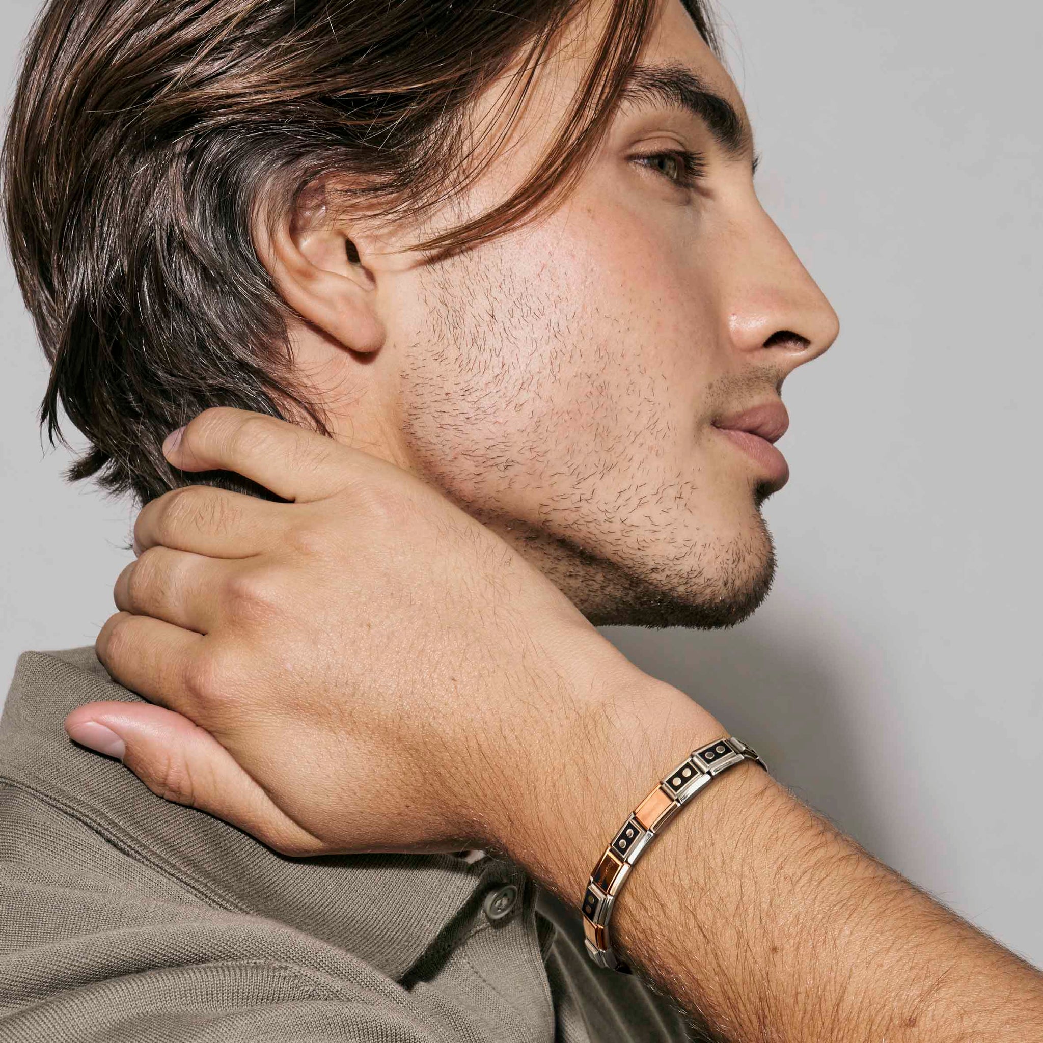Original Composable Link for Nomination's Composable Classic Bracelet with Puppy with Santa hat and gift symbol in 9K rose gold, red and black enamel on stainless steel. Made in Italy.