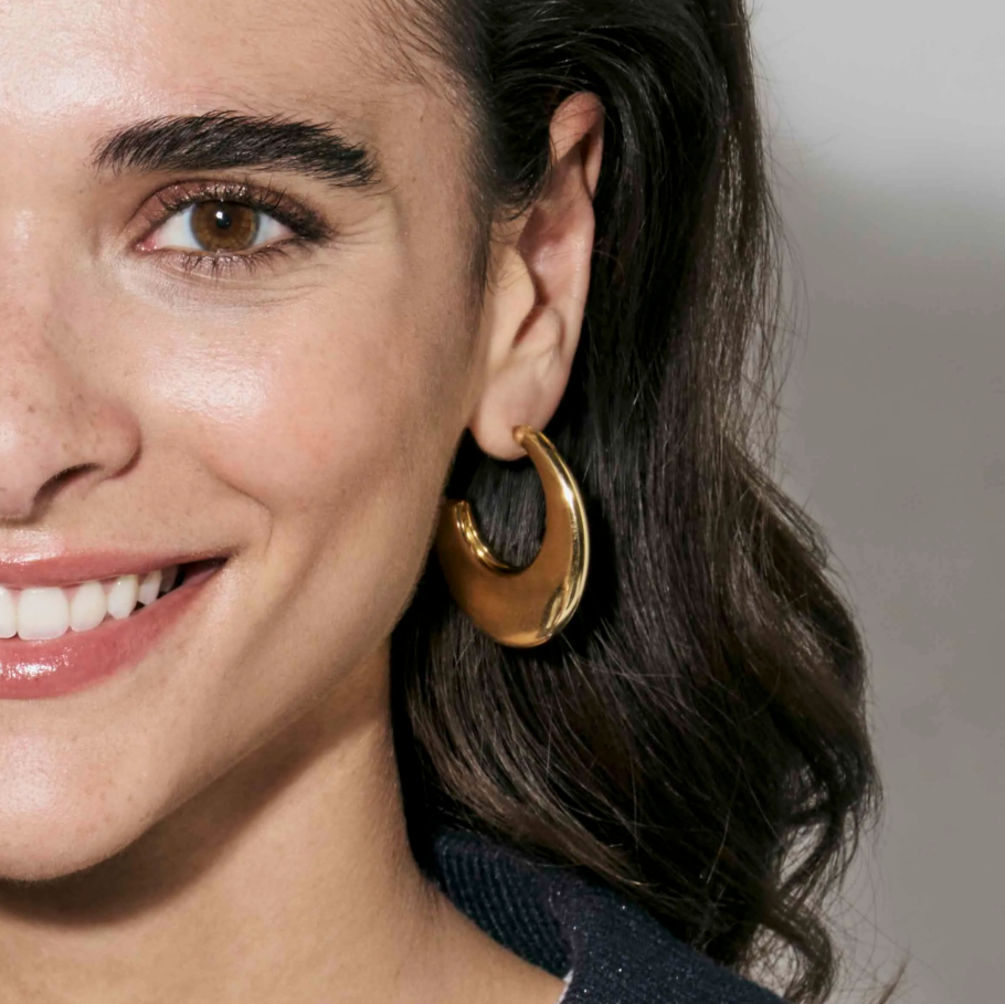 These medium stud hoops from the Ecclettica collection combine light and comfortable gold PVD stainless steel construction with a smooth finish, offering a refined accessory that complements any style.