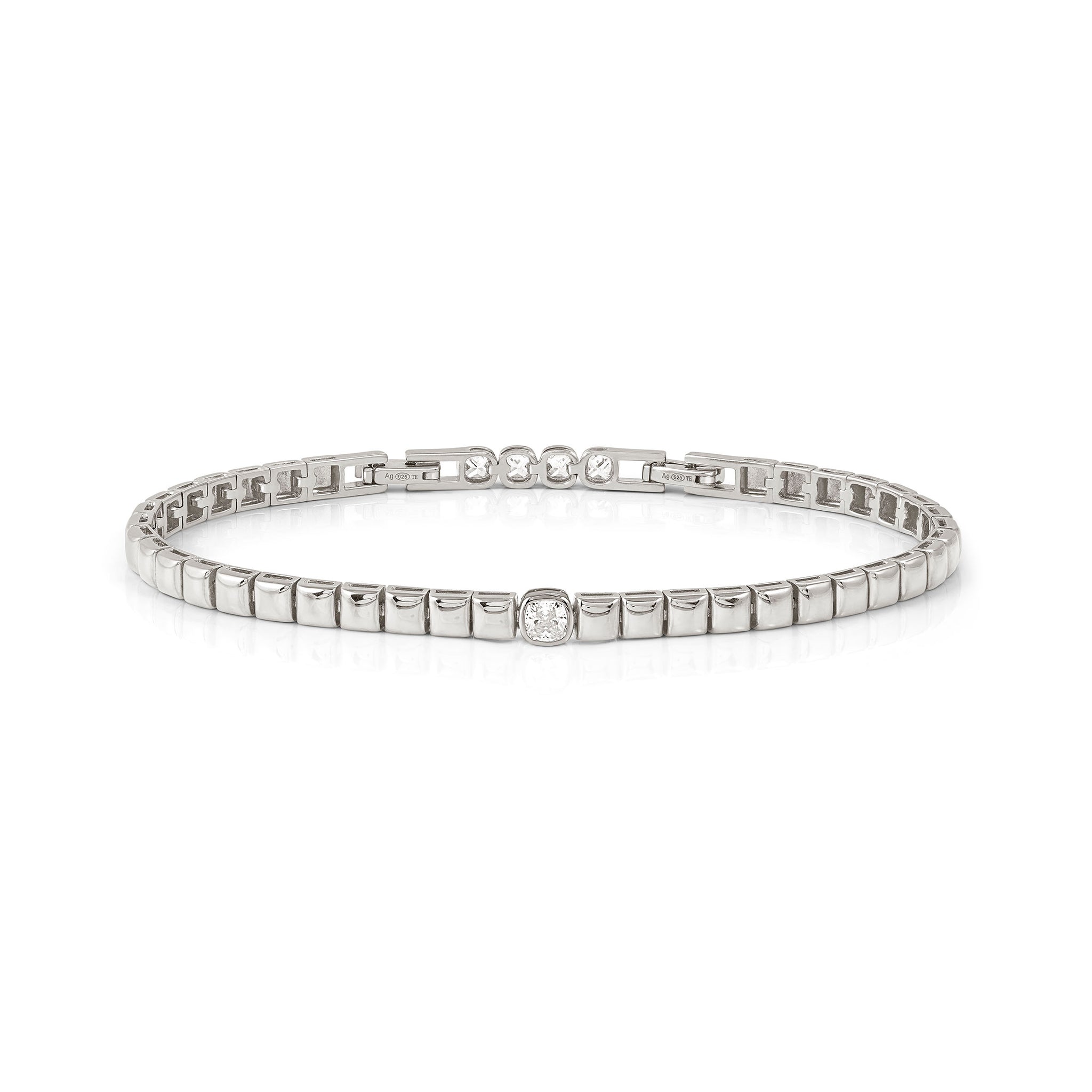Elevate your style with the Enigmatic Shine Bracelet, crafted in sterling silver for lasting elegance. Featuring a sleek geometric design adorned with Cubic Zirconias on catch, and one large central CZ, this bracelet catches the light beautifully, adding a touch of sophistication to any outfit.
