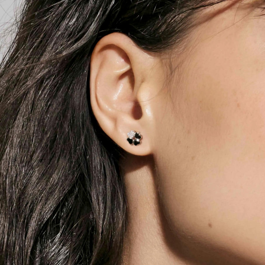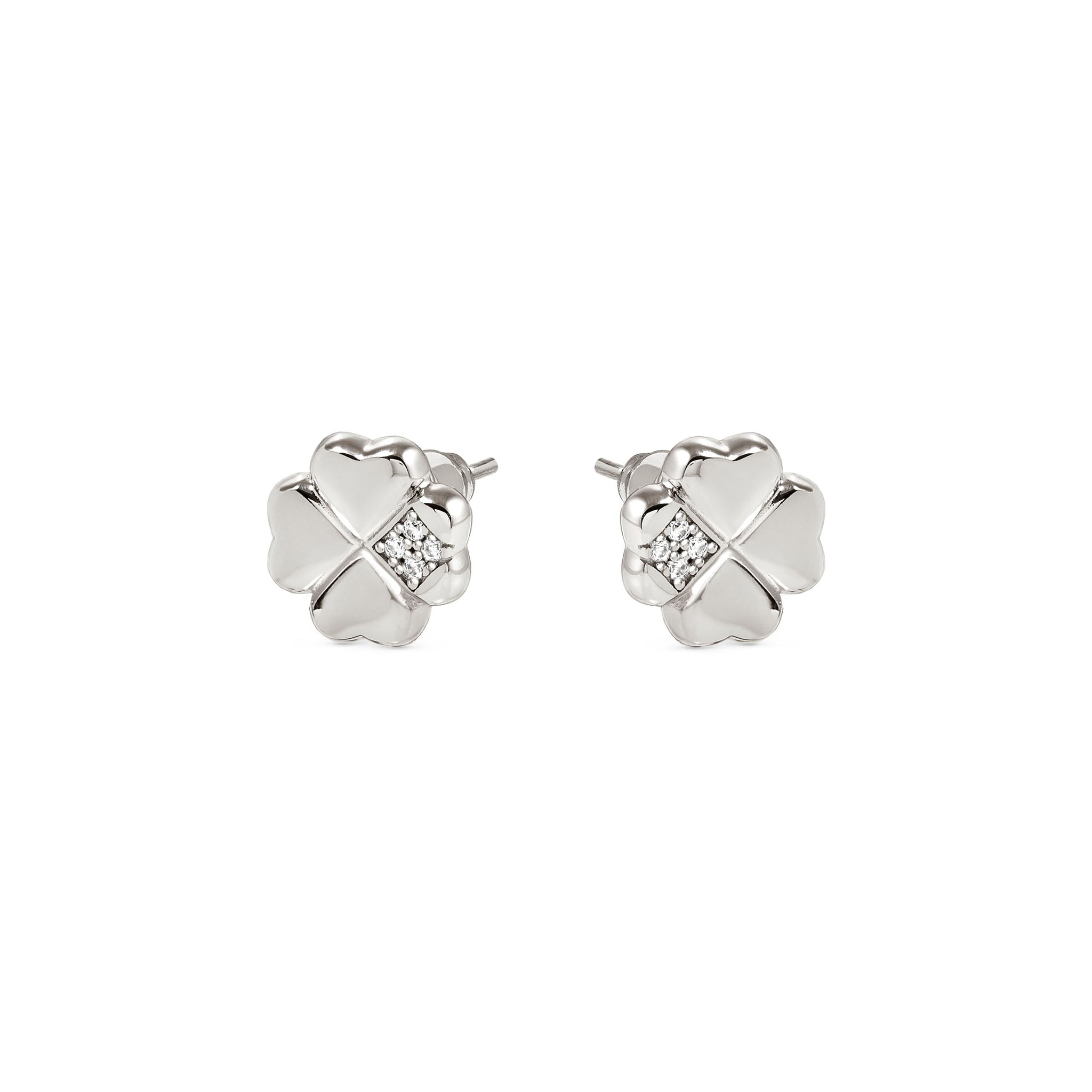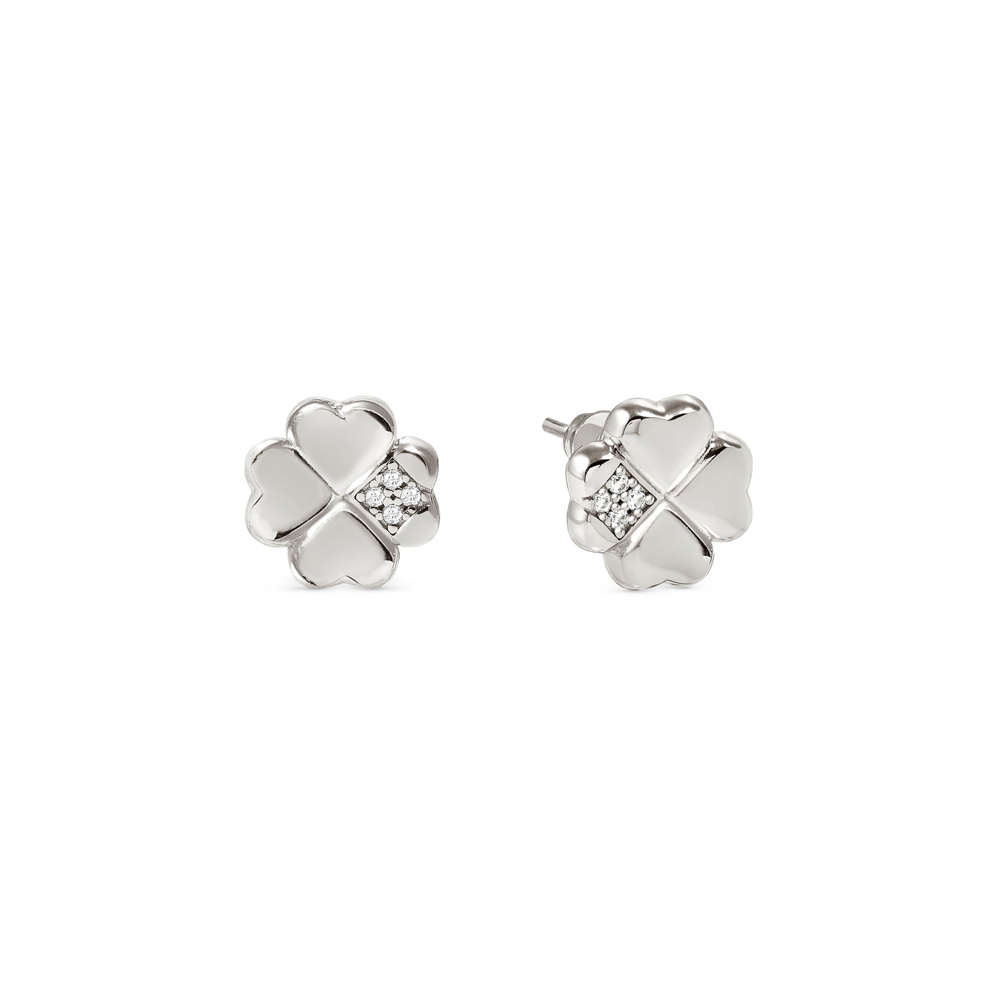 • Load image into Gallery viewer, PETIT SPARKLE STUDS 242304/001 STERLING SILVER FOUR LEAF CLOVER WITH CZ