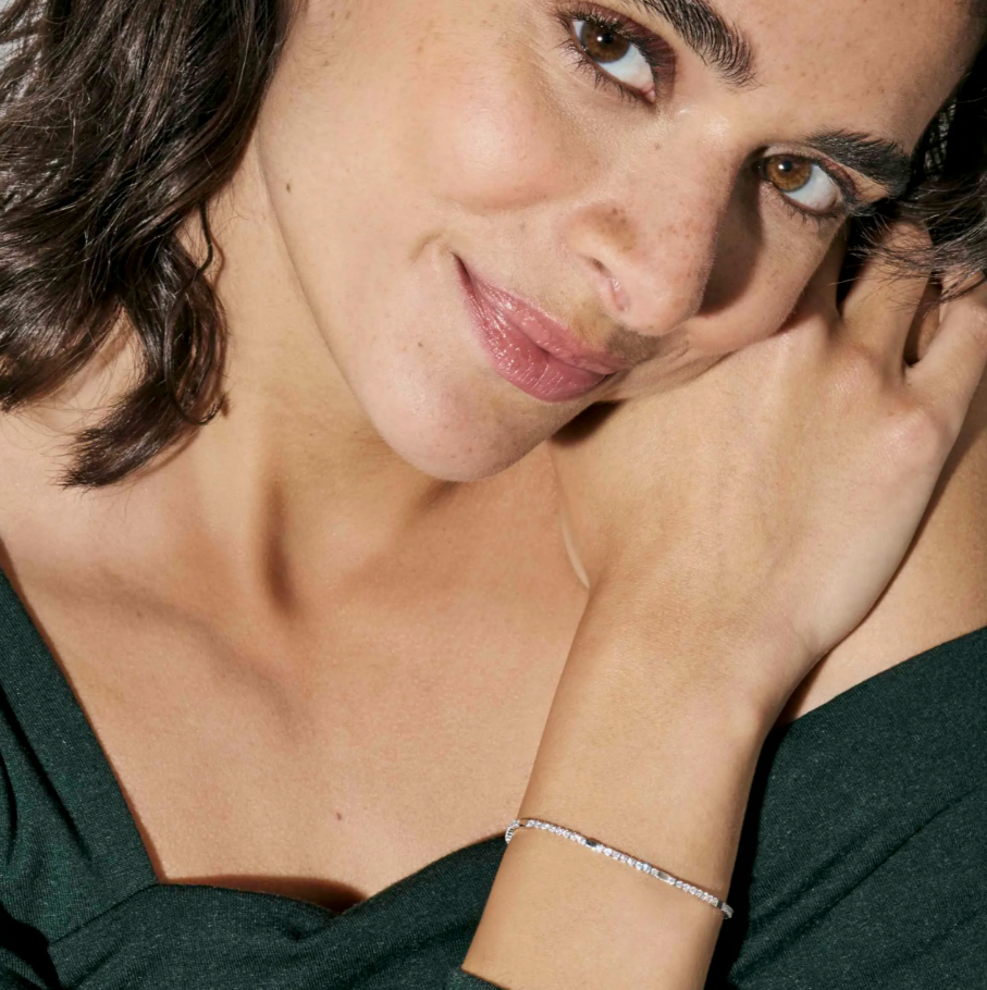 Elevate your style with the Petit Sparkle Tennis Bracelet, crafted from radiant 18k gold plated sterling silver and adorned with shimmering white cubic zirconia stones. This delicate yet striking accessory adds a timeless sparkle to any outfit, perfect for both everyday wear and special occasions.