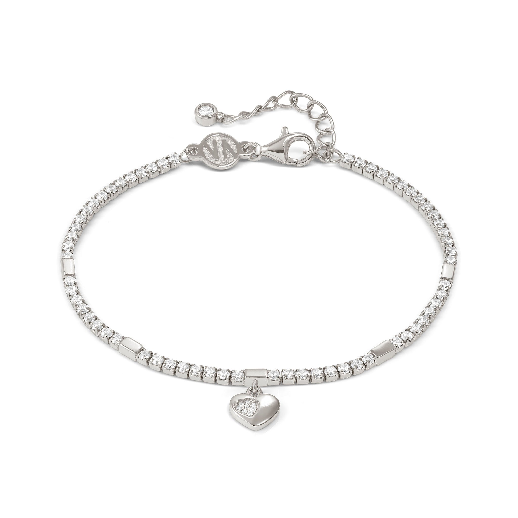Elevate your style with the Petit Sparkle Tennis Bracelet, crafted from radiant sterling silver and adorned with shimmering white cubic zirconia stones and sterling silver heart pendant. This delicate yet striking accessory adds a timeless sparkle to any outfit, perfect for both everyday wear and special occasions.